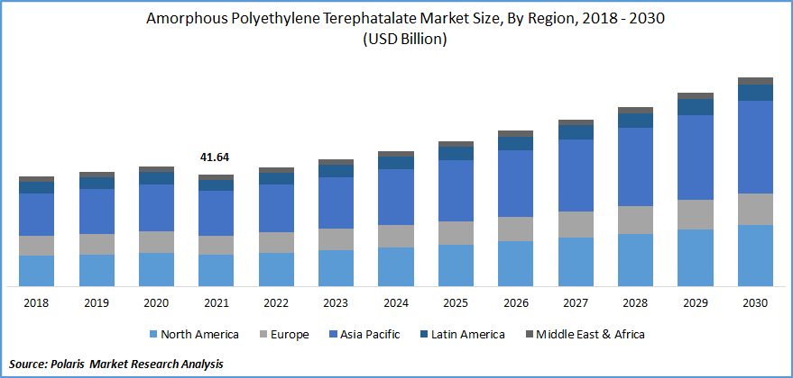 全球非晶聚对苯二甲酸乙二醇酯市场价值为416.4亿美元,2021年预计增长7.3%的复合年增长率预测期间。非晶态聚对苯二甲酸乙二醇酯提供低重量,耐用性,可回收性,清晰,强度高。采用APET也增加了由于其高耐冲击,屏障属性,和化学和耐溶剂性。