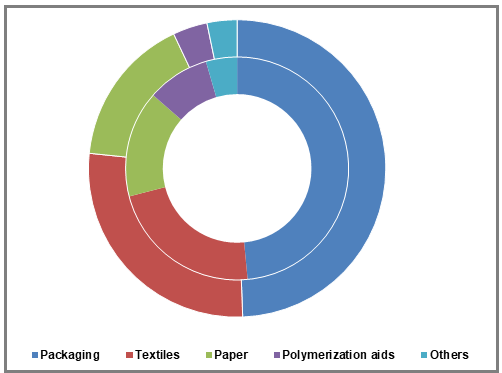 PVA’s major end-use industries comprise of packaging films and textile fibres. Both these end-use industries have observed a growing trend across many regions of the world. The product is used in textile yarns as a sizing agent that provides strength and stiffness to the product. Another very significant application for PVA is polymerization aids, which is the largest end-use of the polyvinyl alcohol in China.